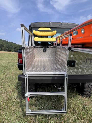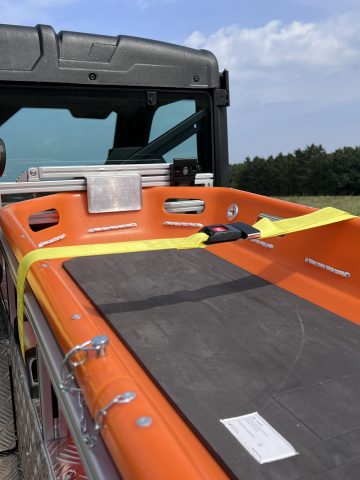 Das Rettungsmodul UTV ist für einen Verletzten und einen Sanitäter ausgelegt und für die Ladeflächen der Polaris Ranger Modelle 1000, Diesel und Kinetic geeignet.