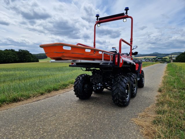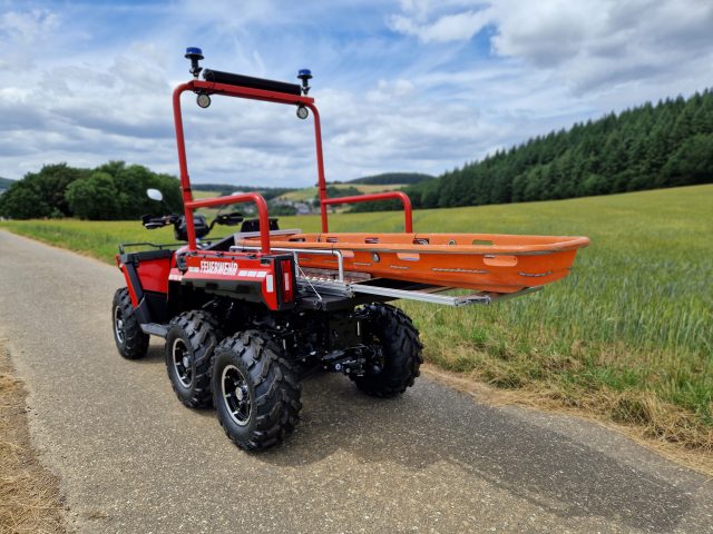 SWK Rettungsmodul ATV für die Personenrettung im Gelände und in schwer zugänglichen Lagen. Ausgelegt für den Transport von einem Verletzten in einer Schleifkorbtrage.