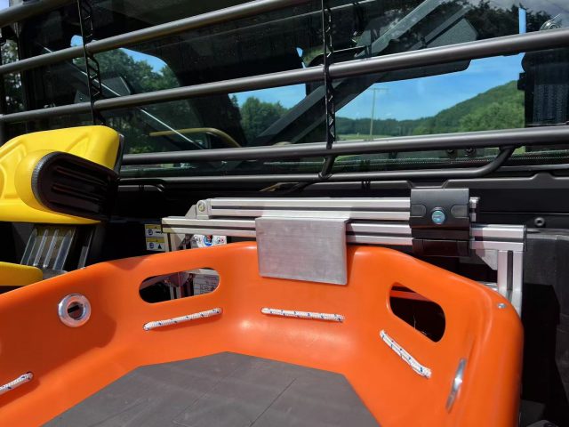 Hier stellen wir ein kompaktes Rettungsmodul UTV S vor, das sich auf die wesentlichen Funktionen konzentriert: die sichere Aufnahme der Schleifkorbtrage und die Bereitstellung eines Sitzplatzes für Einsatzkräfte.